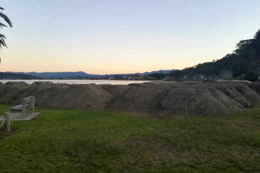 Sand dredged by Whitianga Marina which will be used for the sandbag backstop wall at Brophy's Beach. Photo: TCDC