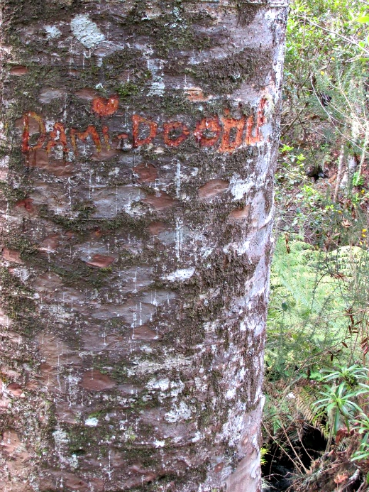 Last Sunday morning David discovered someone had trespassed onto his 70 acre Whitianga property and carved the words ‘DAMI DOODLE' across the trunk of the three-century-old kauri.