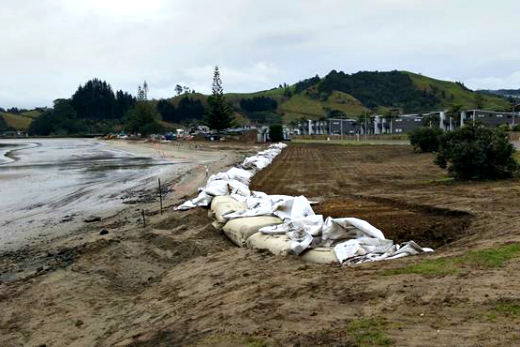 Construction of a rock wall is being planned for Cooks Beach Reserve, while a geotextile sandbag wall at Brophy's Beach has now been completed.