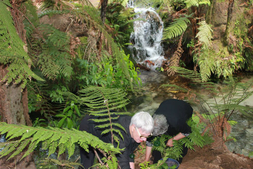 Rotorua Mayor Steve Chadwick (left) planting ferns at Taniwha Springs.