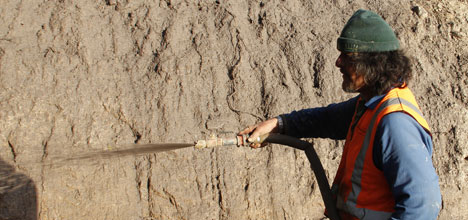 An Evergreen Land Care contractor sprays grass seeds onto a slip – a process used to stabilise the land.