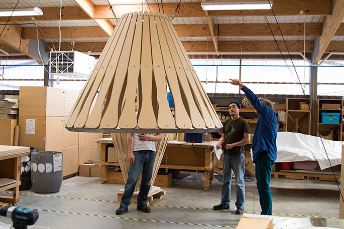 The lights are up to 2.5m tall and were made at the David Trubridge workshop in Hastings and assembled by a team in the forest.