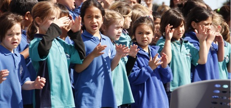 Arataki Primary and St Thomas Moore students singing at the opening.
