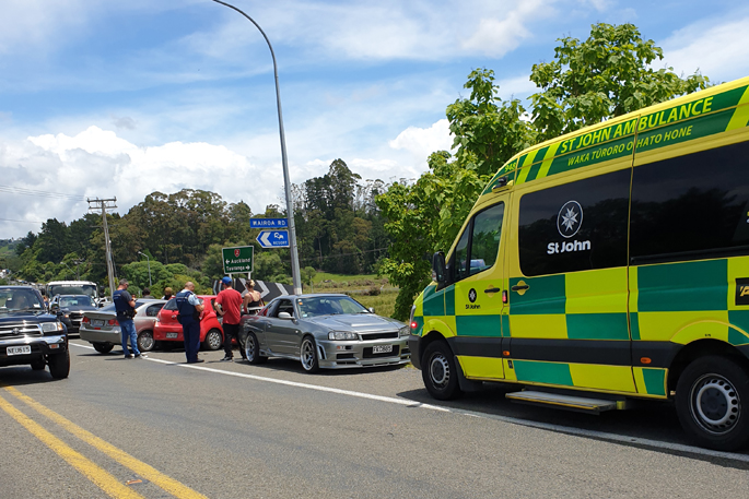 A two car crash on State Highway 2 near Wairoa Road is causing heavy traffic.