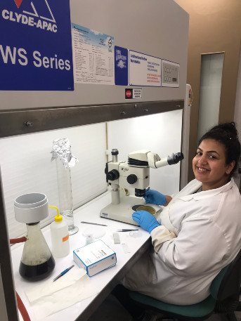 Devina Shetty examing fish for microplastic injestion. Photo: NIWA.