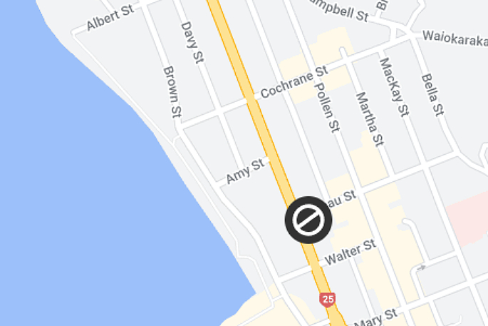 "SH25 is closed between Pahau Streert and Mary Street."