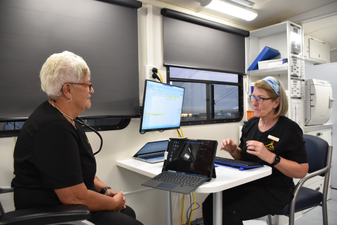 Registered nurse Adrienne Arthur at the HbU mobile waka health clinic in Merivale with nurse practitioner Debbie Inglis. Photo/Supplied.