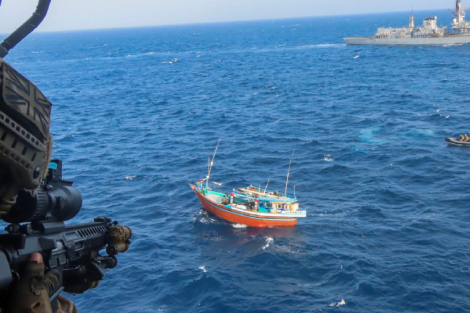 The New Zealand Defence Force said Royal Marines boarded the dhow while a Wildcat helicopter with a Royal Marine sniper team covered them.