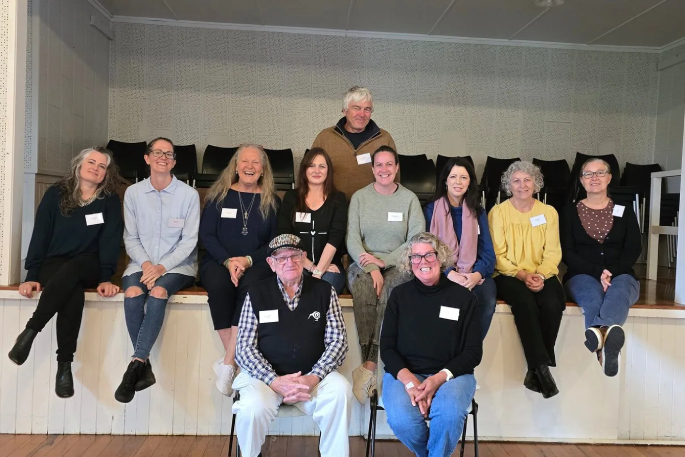 The group of artists who will be exhibiting in the Pyes Pa Art Lovers Exhibition 2025. Front: John Campbell aka "Dad" and Louise Fraider. Middle row: Maureen Fell, Sabrina Fraser, Cathi Barker, Brenda Brickland, Rebecca Mathews, Laura McCabe, Heather Wratt and Cordula Taiwo. Top row: Peter Hodge.