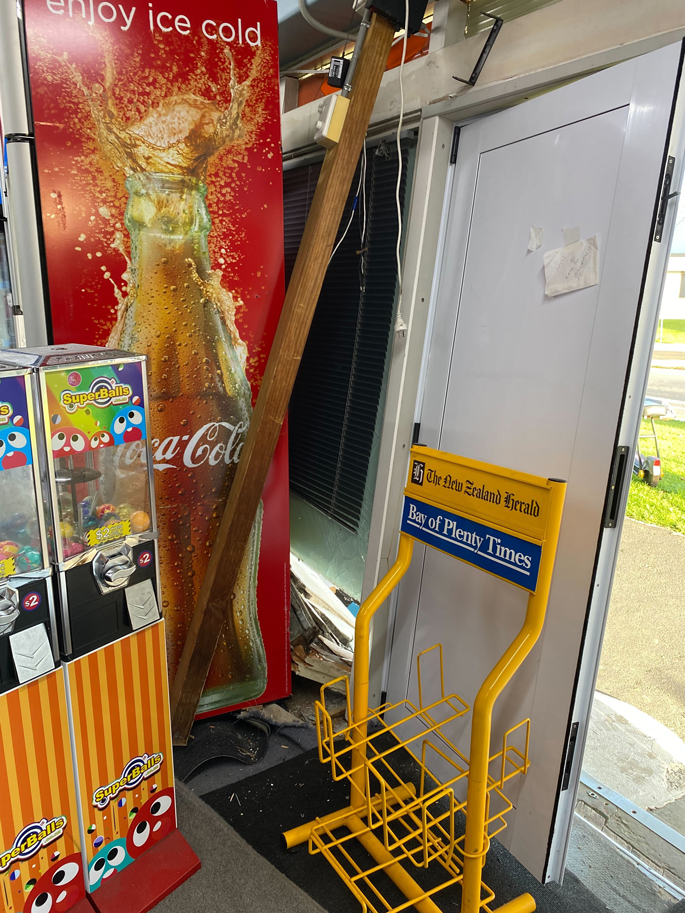 Structural damage to the inside of the Viking Dairy as a result of the ram raid style burglary. Photo / Ayla Yeoman