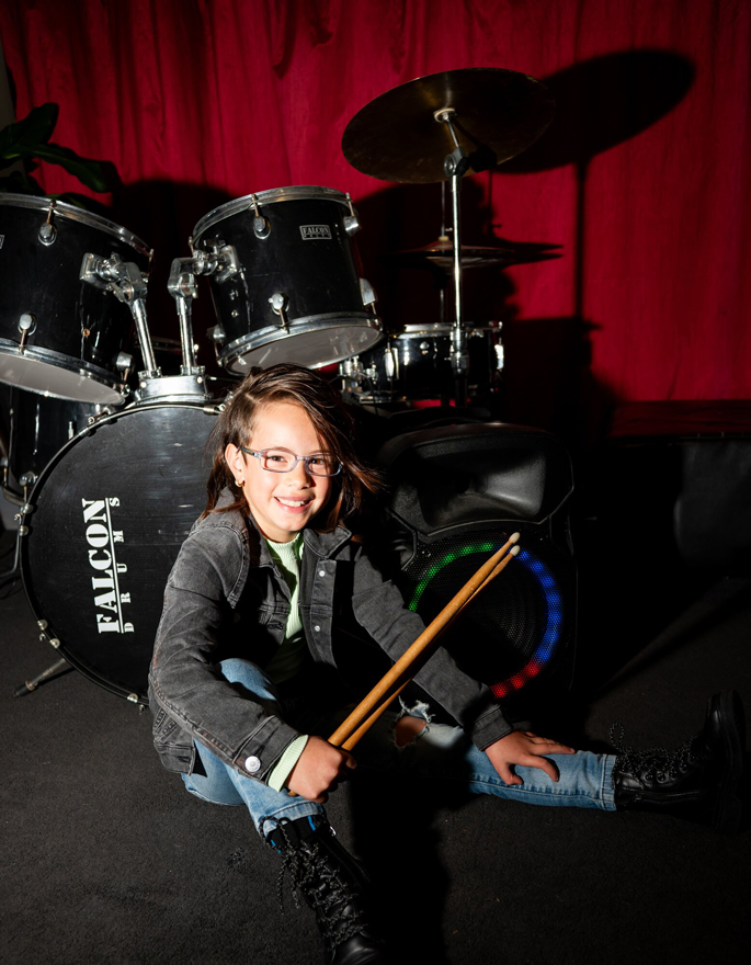 But right now it’s Maia’s time to shine, a chance to haul her drum kit from the shadows to the front of the stage. Into the spotlight. Her chance to make a noise.