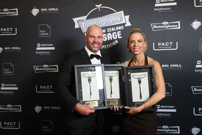 The People’s Choice Award was claimed by Pokeno Bacon for its Chicken Con Queso sausage, while Prime Meats took home the Dunninghams’ Choice Award for its Tobiko Pork and Prawn sausage.