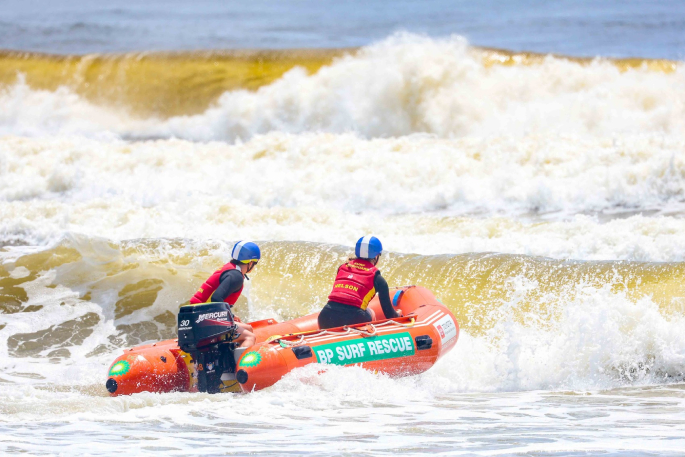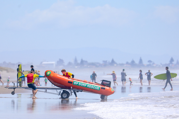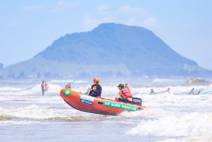 By chance, a crew testing an IRB after a Pāpāmoa competition “happened to be at the right spot at the right time” and rescued two swimmers there.