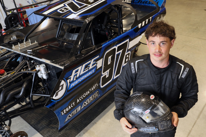 What is a surprise, though, is the class he chose to graduate to. For many years, the full-contact super stock class was where he saw his future. That, however, changed, almost in the blink of an eye earlier this year at Perth Motorplex in Australia. George was a member of a team of young Kiwi drivers taking on their Australian counterparts. The test races were on the programme for the Australian Late Model Championship meeting. Late models are a similar class to super saloons. He was in awe of one driver, who was to be crowned Australian champion that night.