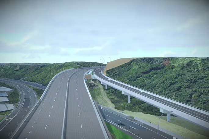 An artist's impression of the new highway and bridge connection. Image / NZTA