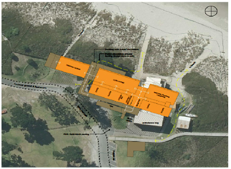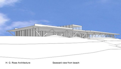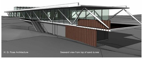 The club wants to replace the decaying and small 400m2 building with a 2147m2 two storey building. Most of the basement floor will be used to store machinery and surf lifesaving gear and as a workshop area – with the floor being mostly set into the sand dune.
