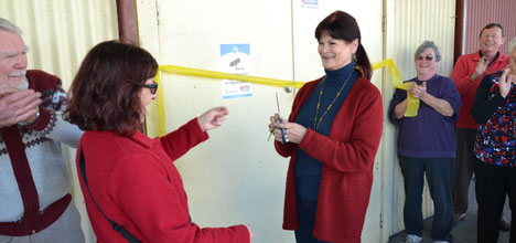 Cargo Shed Collective Kathy Sass gets the keys to the Cargo Shed.