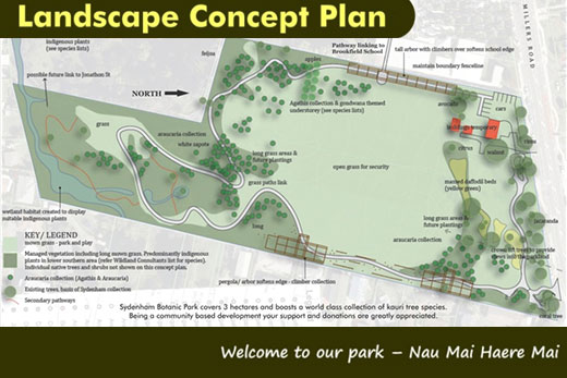 Sydenham Botanic Park covers three hectares in Brookfield, located opposite the Brookfield Shopping Centre.