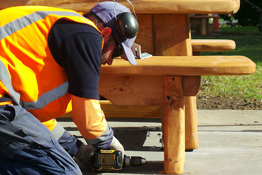 Brookfield's Sydenham Botanical Park's furniture arrived today - large rustic style picnic tables, seats and benches made from macrocarpa by the Tauriko Timber Mill.