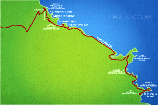 The Proposed Cathedral Coast Walk is being constructed in several stages and will cost a total of $4.77 million. It is part of TCDC's Coromandel Great Walks Project.