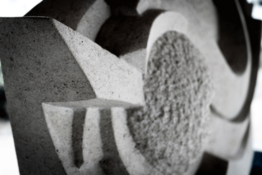 English sculptor Hamish Horsley with ‘Earth Rising' at Thames-Coromandel District Council. Photo: Supplied